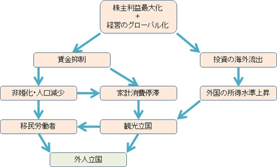 | よく出来た図やなと思わず感心した拾い物。 これを見れば、安倍政権が目指すところがよ〜くわかります。外国人立国。 一部の強欲で利己主義なショーバイニン共が喜びそうな、というか為政者と 共に目指す日本牧場の姿が想像できます。 それに、これを見れば一部の資本家と為政者がTPPに何が何でも参加した い、作り上げたい理由がよく分かります。家畜と自らの餌場は多ければ多い いほど儲けられるという事ですね。よく分かります。 もうじき農奴制も解禁になりますし、ますます外国人奴隷が日本に入ってき ます。外国人奴隷とはいえ社会保障は必要になります。我々が蓄積してきた ものが外国人に食い荒らされていきます。当然ですが治安も悪化するので日 本人が被害者になる犯罪も激増します。でも偽善者達は悪いのは外国人で なく日本人自身だと訳の分からぬ理屈を振り回し、益々日本社会は混迷を深 めるでしょう。でも、一部の資本家と権力者達支配者層にとっては痛くも痒くも ありません。彼らは國がどうなろうと、国民がどうなろうと知った事ではありま せん。ただただ自分が儲かればいいのです。 そうです 今だけ、金だけ、自分だけ です。 ![]() 「後悔先に立たず」の図といったところですか。こうならないようにせんとね。 これも拾い物です。 |